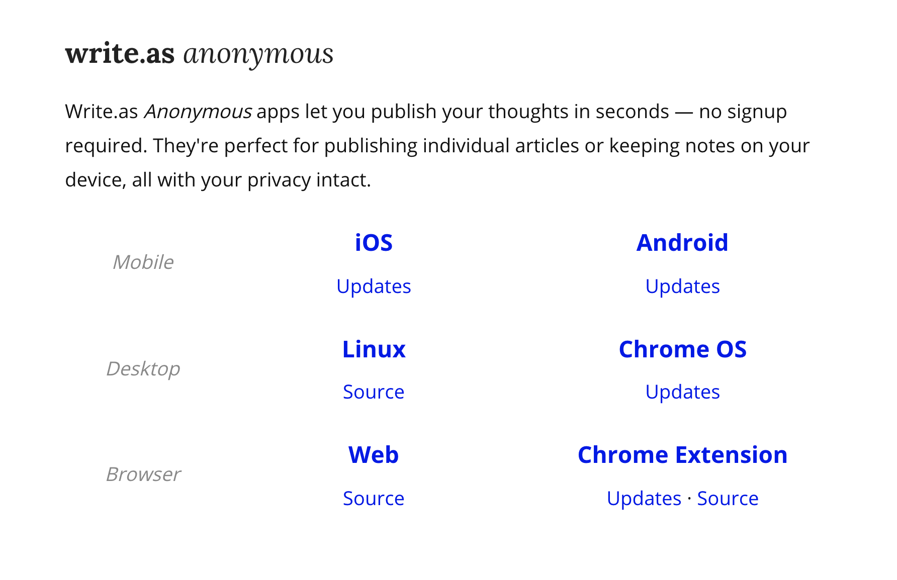This is cool, but what if I wanted to use one of these apps so that I could publish a blog post on here? Presumably I’d need the source code and I’d have to swap out the write.as API client with one for this site.